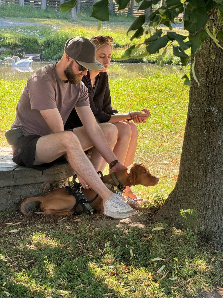 Auf Ruhe und Entspannung legen wir bei unseren Lernspaziergängen besonderen Wert. Viele Probleme bei der Leinenführigkeit kommen häufig daher, dass die Teams nicht gelernt haben, sich zu entspannen und zu fokussieren. Daher warten wir zu Beginn eines jeden Treffens, bis alle Teams angekommen sind und sich die erste Aufregung gelegt hat.
